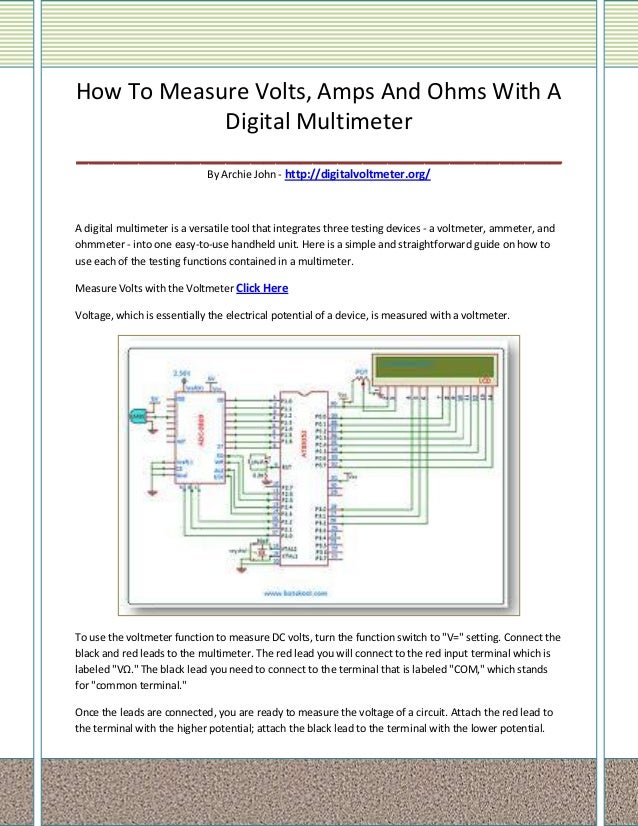 How To Make Digital Volt Meter Circuit Diagram Step 3: After determining the full-scale current rating of your meter movement, you must accurately measure its internal resistance. To do this, disconnect all components from the previous testing circuit and connect your digital ohmmeter across the meter movement terminals. Record this resistance figure and the full-scale current figure The transistors are BC640, however you may try other transistors like 8550 or 187 etc. The proposed digital voltmeter, ammeter circuit module can be effectively used with a power supply for indicating the voltage and current consumption by the connected load through the attached modules. Referring to the circuit diagram below, the 3 digit digital display module is build through the ICs CA 3162 But to measure greater levels of voltage, something more is needed. To get an effective voltmeter meter range in excess of 1/2 volt, we'll need to design a circuit allowing only a precise proportion of measured voltage to drop across the meter movement. This will extend the meter movement's range to higher voltages.
