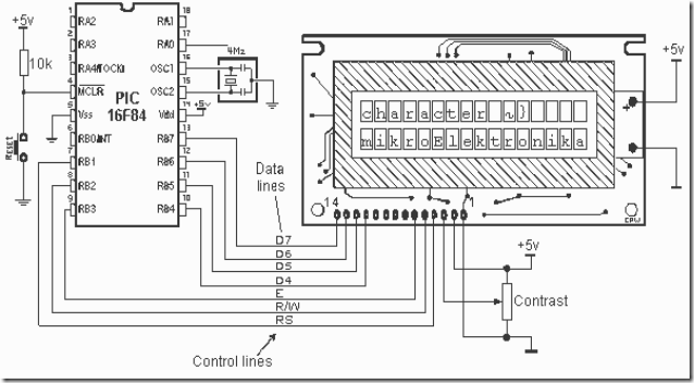 LCD Interfacing with PIC Microcontrollers Part 2 Circuit Diagram PIC microcontroller LCD interfacing MPLAB XC8 MikroC LCD Library Code Example. 2 Sending Data To The LCD. We'll be using the 4-Bit interface in these tutorials as it's the most common and most wished for. until I realized that you did not have any delay after the function commands for things like clear screen and moving the cursor
